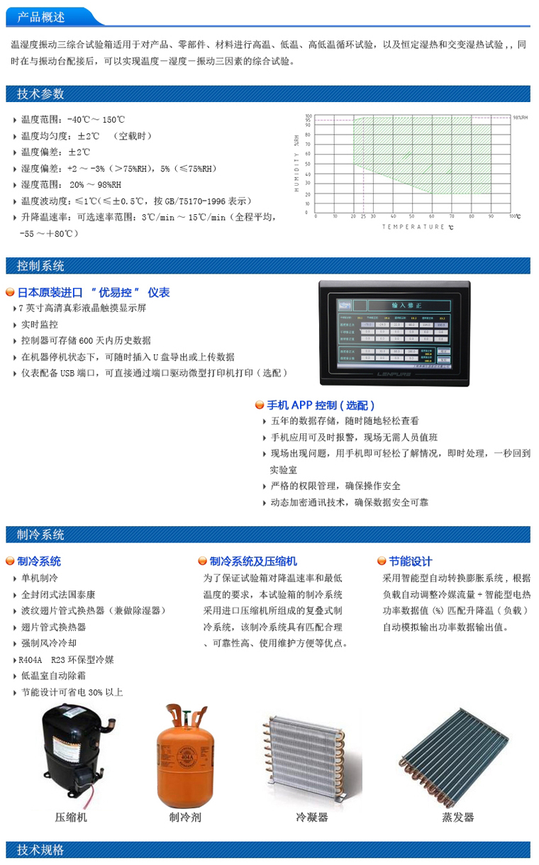 a\除濕采用凝露法,箱內(nèi)裝有除溫器,由制冷系統(tǒng)提供冷源 ,使工作室內(nèi)空氣中的水蒸汽在除濕器上凝露成水,排出箱外.為保證試驗箱長期連續(xù)工作的可靠性,制冷系統(tǒng)為獨立單級制冷機(jī)組成,選用為法國“泰康”牌原裝壓縮機(jī)組。